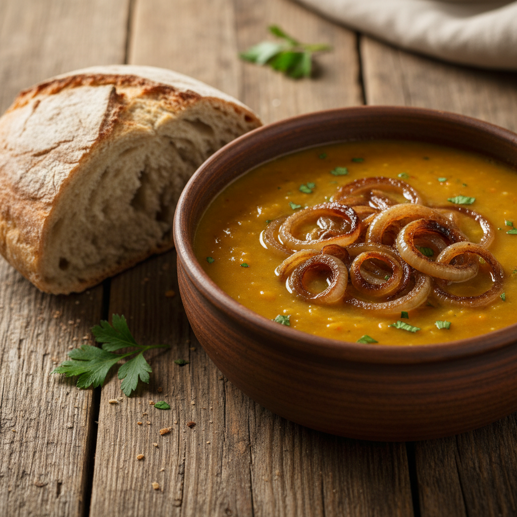 Mercimek corbasi represents one of the world's oldest comfort foods, dating back centuries in Turkish and broader Eastern Mediterranean cooking. Red lentils break down almost completely during cooking, creating a velvety texture that requires no blending for smoothness. This soup appears on menus from casual neighborhood restaurants to white-tablecloth establishments, indicating its status across all economic classes as a trusted source of nourishment. The warm spice of cumin and the brightness of lemon juice at the end transform simple vegetables and legumes into something memorable and deeply satisfying.