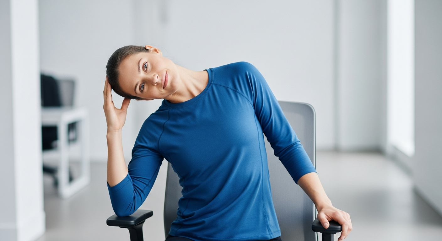 Sit upright and gently tilt your right ear toward your right shoulder, creating a stretch along the left side of your neck. For a deeper stretch, you can place your right hand on top of your head and apply gentle pressure. Hold for 15 to 20 seconds and repeat on the opposite side. This stretch releases tension that builds up from stress and forward posture.